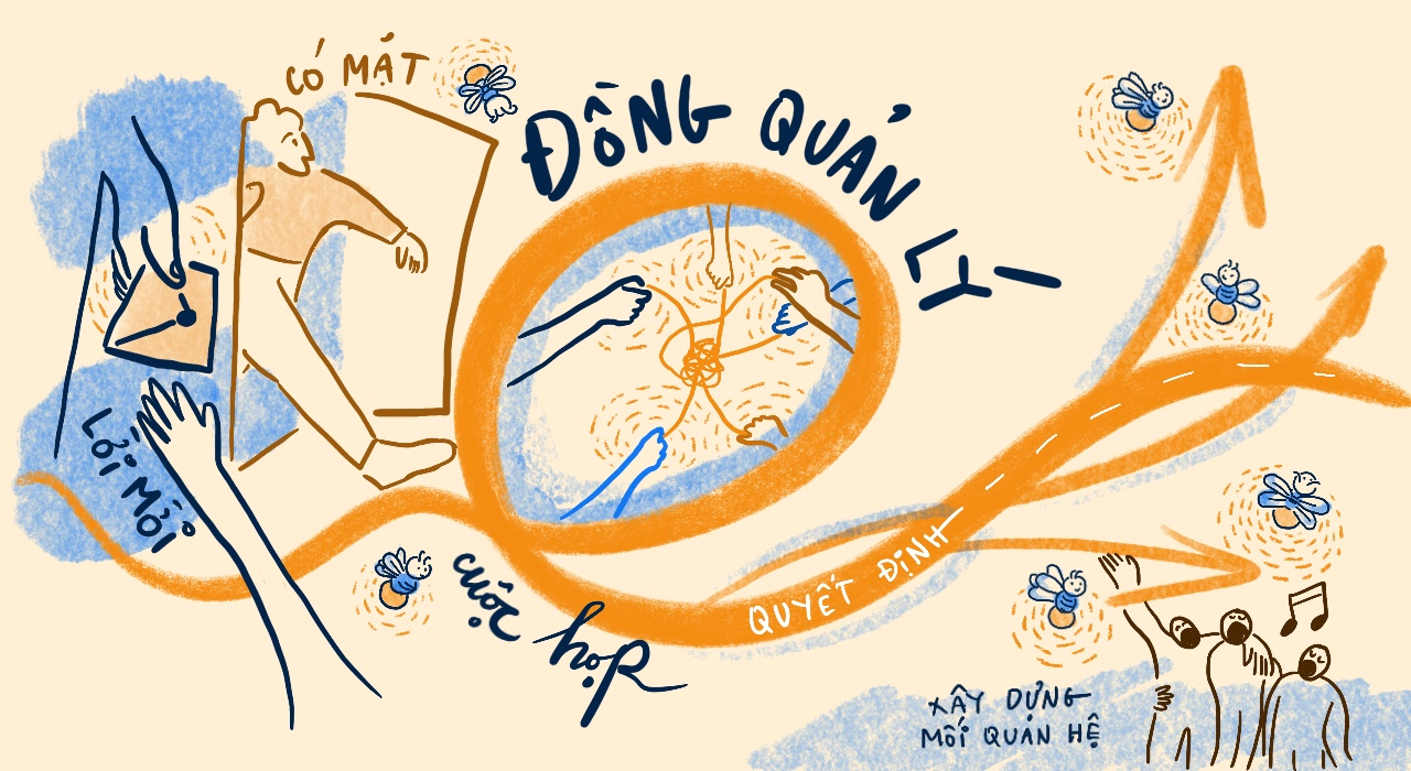 Cuộc họp đồng quản lý (Co-managed meeting) là một trong số những phương pháp họp hiệu quả mà Đom Đóm Lab đang thực hành và lan tỏa cùng đối tác của mình – Percolab Co-op. Phương pháp này được xây dựng dựa trên nền tảng và niềm tin rằng mọi người đều mong muốn và có thể đóng góp, khi mục đích được làm rõ và trách nhiệm được chia sẻ.
